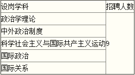 備注:表中學(xué)科方向為設(shè)崗方向,非應(yīng)聘者所學(xué)專業(yè)。要求應(yīng)聘人員的專業(yè)為政治學(xué)相關(guān)專業(yè),與設(shè)崗學(xué)科方向相同或相近。