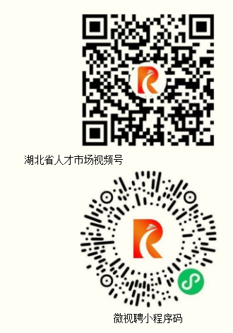 (二)線上參會。武漢其他高校畢業(yè)生,請于5月13日(周五)9:00前掃碼登錄湖北省人才市場視頻號,線上觀看推介會,并通過湖北省人才市場微視聘小程序遠(yuǎn)程視頻面試。