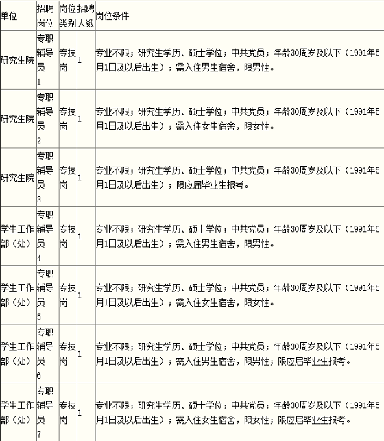 (二)被聘人員須服從學(xué)校的統(tǒng)一安排,以上招聘的專職輔導(dǎo)員必須在專職輔導(dǎo)員崗位工作至少8年。