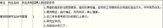 根據(jù)工作需要,理學(xué)院現(xiàn)面向校內(nèi)招聘研究生秘書1名,具體如下: