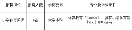 因?qū)W校附屬中學(xué)工作需要,現(xiàn)面向社會公開招聘小學(xué)體育教師1名,有關(guān)事項公告如下: