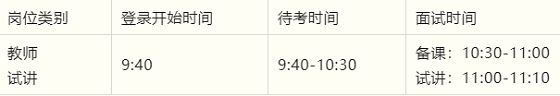 4、面試時間共計40分鐘,包含備課時間30分鐘(備課期間不允許試講作答),試講時間10分鐘,規(guī)定作答時間截止后,系統(tǒng)將強制交卷,超出規(guī)定作答時間的部分,皆為無效作答。