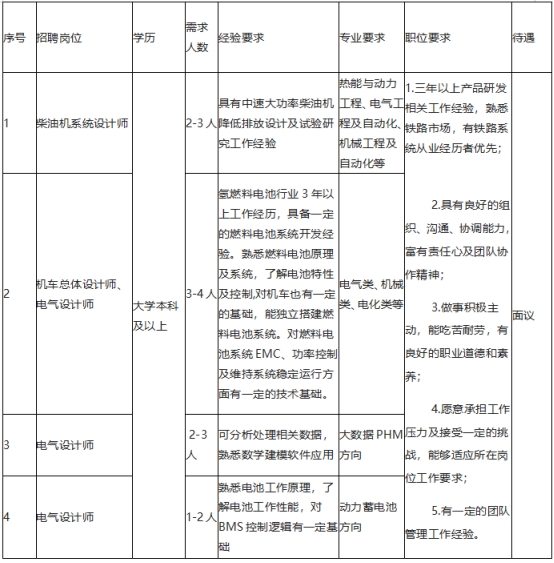 招聘郵箱:hr@crrcqs.com,網(wǎng)址:http://www.crrcgc.cc/qsy 提醒:有意向者請將個人簡歷主題以“求職崗位+姓名+學校+專業(yè)”的形式投遞至公司招聘郵箱,對符合基本條件人員我們將會與您聯(lián)系面試事宜。 |