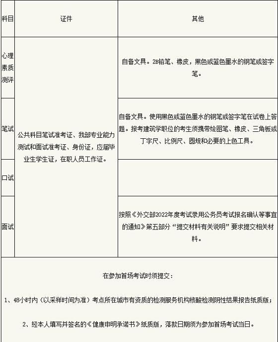 5.面試階段,考生須按照《外交部2022年度考試錄用公務(wù)員考試報(bào)名確認(rèn)等事宜的通知》第五部分“提交材料有關(guān)說明”要求提交相關(guān)材料。
