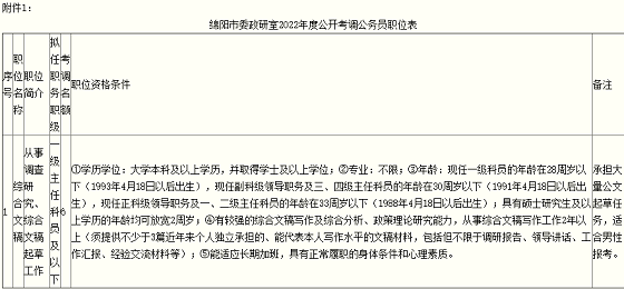 本公告和各職位具體條件由綿陽市委政研室負責解釋。