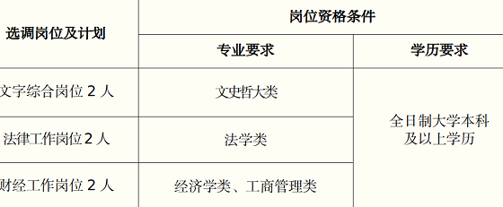 本次計(jì)劃公開選調(diào)公務(wù)員6名。具體崗位和資格條件見下表