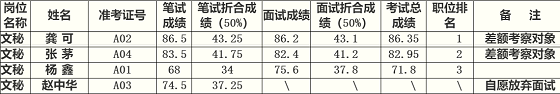 南充市自然資源和規(guī)劃局2022年公開遴選工作人員的面試工作已經(jīng)結(jié)束,根據(jù)《南充市自然資源和規(guī)劃局2022年公開遴選工作人員公告》的規(guī)定,現(xiàn)將考生考試總成績及差額考察對象予以公告(見附件)。 附件:南充市自然資源和規(guī)劃局2022年公開遴選工作人員考試總成績及差額考察對象 南充市自然資源和規(guī)劃局 2022年7月26日 南充市自然資源和規(guī)劃局2022年公開遴選工作人員考試總成績及差額考察對象