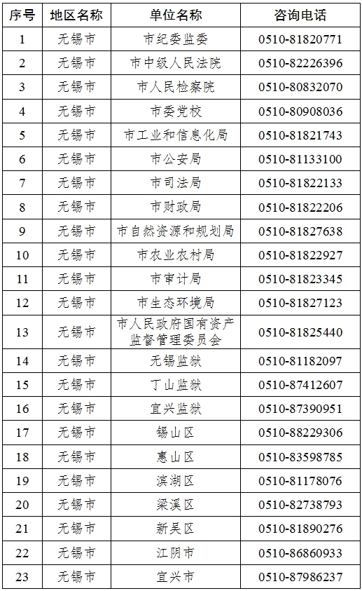 無(wú)錫市2025年度考試錄用公務(wù)員招錄單位咨詢(xún)電話(huà)