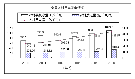 B.我國農(nóng)村發(fā)電量增長速度最慢的年份是2003年