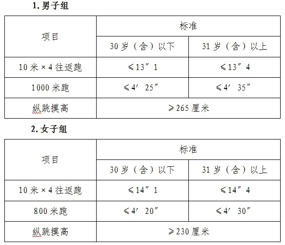 報(bào)考公安機(jī)關(guān)(含森林公安)、監(jiān)獄、勞動教養(yǎng)管理機(jī)關(guān)的人民警察和人民法院、人民檢察院司法警察職位的考生須進(jìn)行體能測評,體能測評不合格者不能參加面試。體能測評按照人力資源和社會保障部、公安部、國家公務(wù)員局聯(lián)合頒布的《關(guān)于印發(fā)公安機(jī)關(guān)錄用人民警察體能測評項(xiàng)目和標(biāo)準(zhǔn)(暫行)的通知》(人社部發(fā)〔2011〕48號)執(zhí)行。