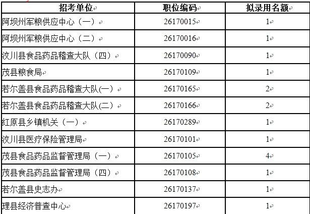 按照《中共阿壩州委組織部 阿壩州人力資源和社會保障局 阿壩州2014上半年公開考試錄用公務(wù)員的公告》規(guī)定,現(xiàn)將報(bào)名繳費(fèi)人數(shù)與計(jì)劃擬錄用名額之比未達(dá)到規(guī)定比例的職位調(diào)整情況公告如下: