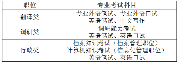 翻譯類重點考察考生本專業(yè)外語的聽、說、讀、寫、譯等基本功;調(diào)研類重點考察考生的調(diào)研理論基本功、文字表達能力和英語水平;行政類重點考察考生的本專業(yè)知識和英語水平。全體考生均需參加心理素質(zhì)測試(筆試,不計入考試成績)。報考英語翻譯職位的考生,參加專業(yè)外語筆試,不再進行英語筆試。