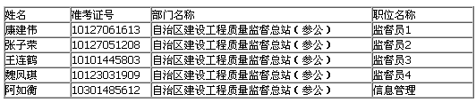 根據(jù)《內(nèi)蒙古自治區(qū)2014年黨政群機關和參照公務員法管理單位考試錄用公務員和工作人員簡章》、考生考試總成績以及體檢考察結果,現(xiàn)對自治區(qū)建設廳擬錄用人員予以公示。