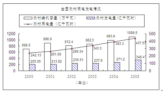 2、根據(jù)上圖,下列關(guān)于我國農(nóng)村用電發(fā)電情況的表述,錯誤的一項是( )。