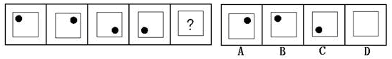 (答案:B。黑點(diǎn)在正方形中順時(shí)針移動(dòng)。在第5個(gè)圖形中,應(yīng)該正好移動(dòng)到左上角。)
