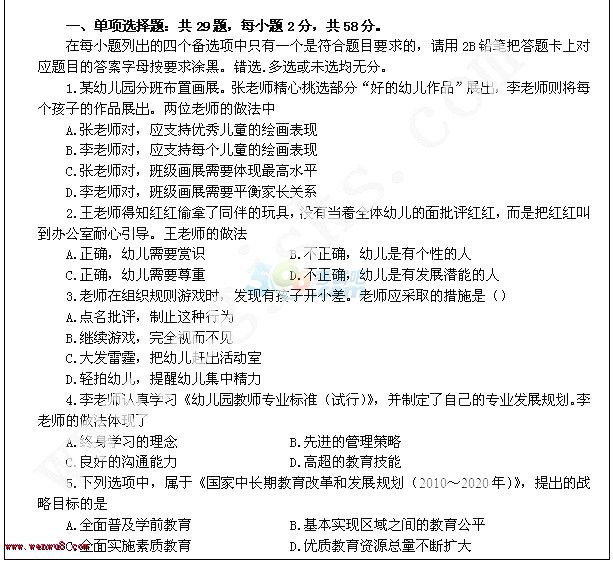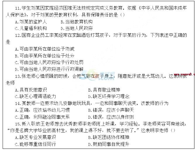 您現(xiàn)在的位置:首頁 >> 教師資格證考試真題 >> 幼兒綜合素質(zhì)真題 >> 內(nèi)容