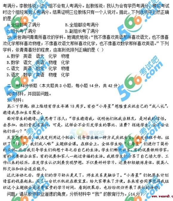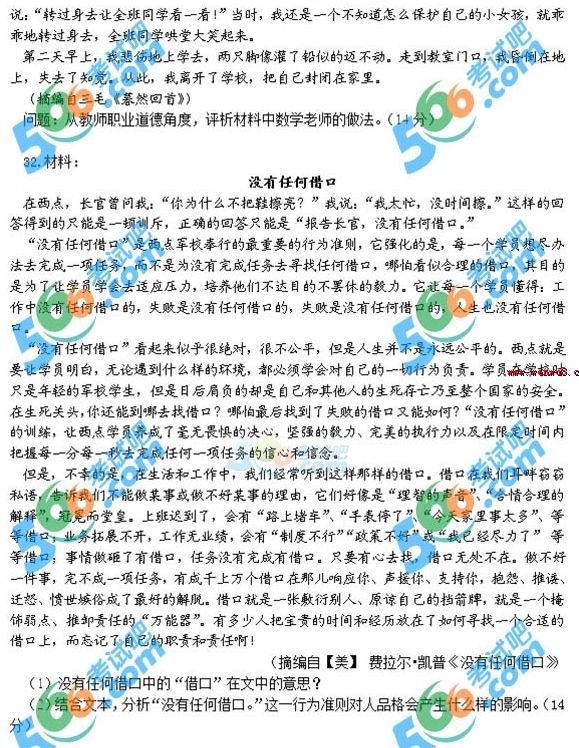 2014下半年教師資格證考試《中學(xué)綜合素質(zhì)》真題(完整版)(2)