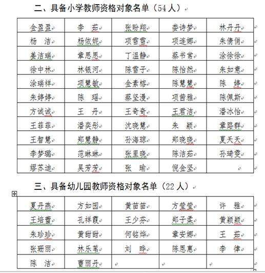 根據(jù)教育部《教師資格條例》和浙江省《實施〈教師資格條例〉細則》、溫州市教育局《關(guān)于做好2016年春季教師資格認定工作的通知》精神,通過網(wǎng)上報名、現(xiàn)場確認、體檢,現(xiàn)將龍灣區(qū)2016年春季第二批教師資格認定通過的106名對象名單予以公示。公示時間:2016年7月12日-2016年7月18日。如發(fā)現(xiàn)其中有不符合《教師資格條例》規(guī)定和違反師德表現(xiàn)的對象,請在公示期內(nèi)向區(qū)教育局人事科或監(jiān)察室反映,聯(lián)系電話:86358281,86387188。