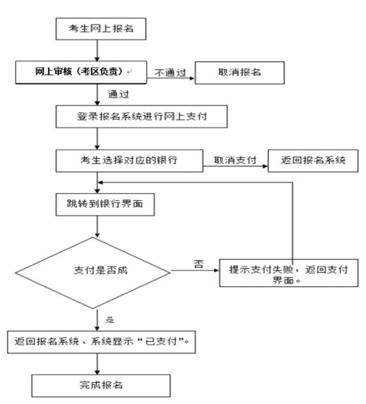 (三)網(wǎng)上繳費(fèi)?忌鷪(bào)名資格審核通過(guò)后,即可進(jìn)行網(wǎng)上支付考試費(fèi),報(bào)名資格未經(jīng)審核或?qū)徍瞬煌ㄟ^(guò)的考生,不能網(wǎng)上支付。審核通過(guò)的考生必須在9月16日前網(wǎng)上支付,逾期未支付考試費(fèi)的考生,按自動(dòng)放棄報(bào)名資格處理。