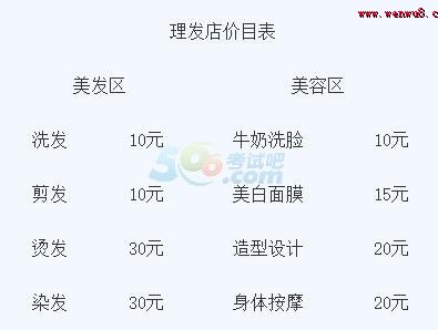 15、材料:角色游戲中,大二班在教室里開展理發(fā)店主題游戲。教師為了提升幼兒的游戲水平,主動為幼兒制作了理發(fā)店價目表(見圖1)