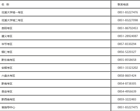 (二)本次面試共設(shè)十二個(gè)考區(qū):花溪大學(xué)城一考區(qū)(特殊教育、幼兒園、小學(xué))、花溪大學(xué)城二考區(qū)(初中、高中、中職)、貴陽考區(qū)、遵義考區(qū)、畢節(jié)考區(qū)、銅仁考區(qū)、黔東南考區(qū)、安順考區(qū)、六盤水考區(qū)、黔南考區(qū)、貴定考區(qū)、黔西南考區(qū)。由于報(bào)考人數(shù)分布不均,各考區(qū)報(bào)考人數(shù)達(dá)到容量上限后,該考區(qū)系統(tǒng)將自動(dòng)關(guān)閉。考生需盡早報(bào)名,否則會(huì)出現(xiàn)擬報(bào)考區(qū)達(dá)到容量上限后無法選擇該考區(qū)的情況。由于本次面試考生規(guī)模較大,各考區(qū)可能會(huì)安排不同地址的分散考點(diǎn)(考點(diǎn)分配由系統(tǒng)在所報(bào)考區(qū)內(nèi)隨機(jī)安排),請考生務(wù)必提前做好準(zhǔn)備并按照準(zhǔn)考證規(guī)定的時(shí)間、地點(diǎn)參加面試,以免造成延誤。考生如對面試有任何疑問,請及時(shí)與所報(bào)考區(qū)聯(lián)系,各考區(qū)及省指導(dǎo)中心咨詢電話一覽表如下: