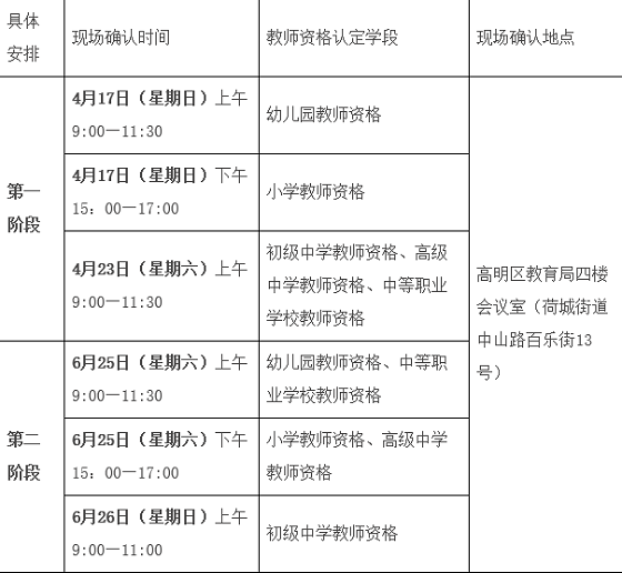 (二)幼兒園、小學(xué)、初級中學(xué)教師資格由高明區(qū)教育局進(jìn)行認(rèn)定;高級中學(xué)教師資格、中等職業(yè)學(xué)校教師資格和中等職業(yè)學(xué)校實習(xí)指導(dǎo)教師資格,由佛山市教育局以委托形式下放給我區(qū)教育局進(jìn)行認(rèn)定,并由佛山市教育局實行備案管理。