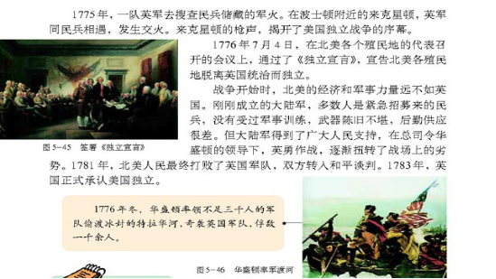 下面是關(guān)于《美國(guó)獨(dú)立戰(zhàn)爭(zhēng)》一課的部分內(nèi)容,請(qǐng)根據(jù)要求回答問題。