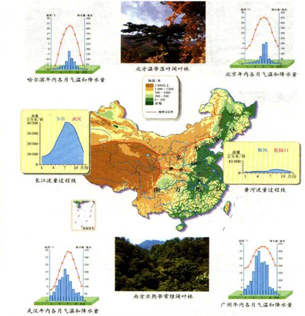 (1)寫出“北方地區(qū)和南方地區(qū)在地形、氣候、植被類型等方面的自然地理差異”教學設計中的教學目標、教學方法和教學過程。