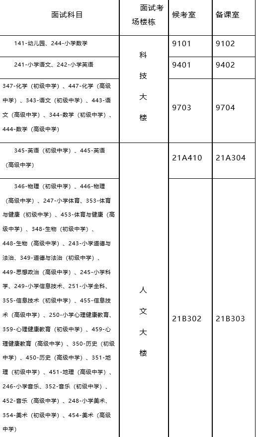 四、面試科目所對應(yīng)樓棟