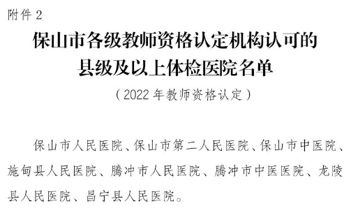 附件2:《保山市各級教師資格認(rèn)定機(jī)構(gòu)認(rèn)可的縣級及以上體檢醫(yī)院名單》