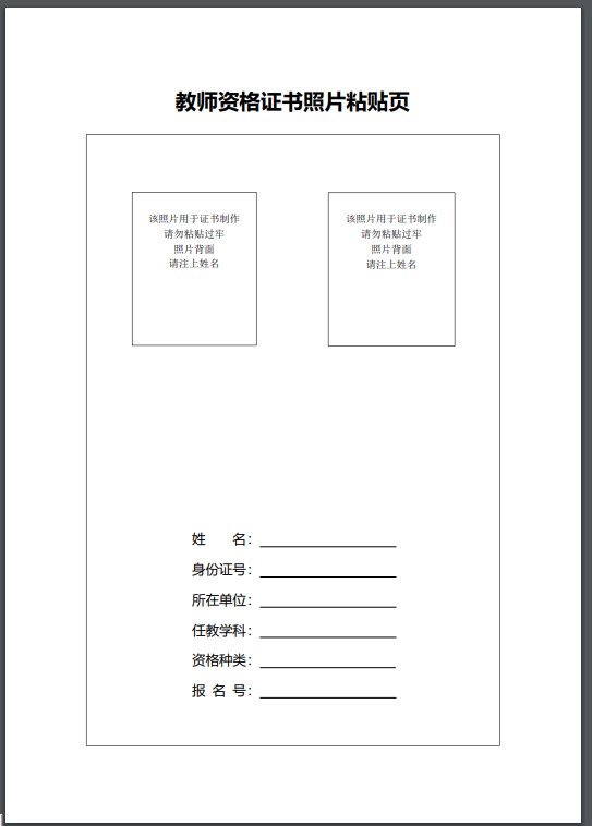 ②教師資格證書照片粘貼頁(粘貼好帶到現(xiàn)場)