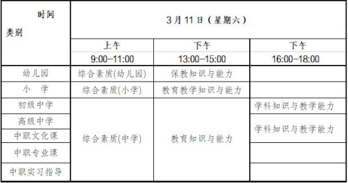 (一)中小學(xué)教師資格考試各學(xué)段考試科目的具體時間,如表1所示。