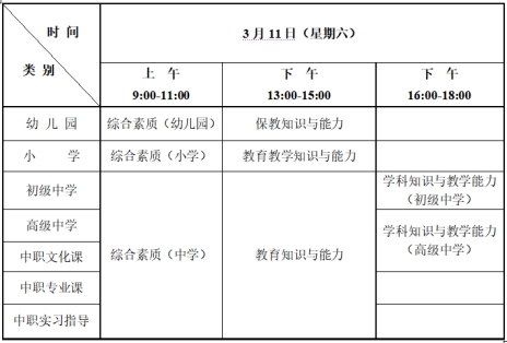 (五)申請(qǐng)中職文化課教師資格的人員參加高級(jí)中學(xué)教師資格考試的各科筆試;申請(qǐng)中職專業(yè)課及中職實(shí)習(xí)指導(dǎo)教師資格的人員參加中學(xué)教師的“綜合素質(zhì)(301)”和“教育知識(shí)與能力(302)”兩科筆試,“學(xué)科知識(shí)與教學(xué)能力”科目納入面試環(huán)節(jié)考查。