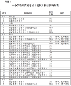 2.中小學(xué)教師資格考試(筆試)科目代碼列表