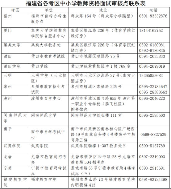 附件:福建省各考區(qū)中小學教師資格面試審核點聯(lián)系表
