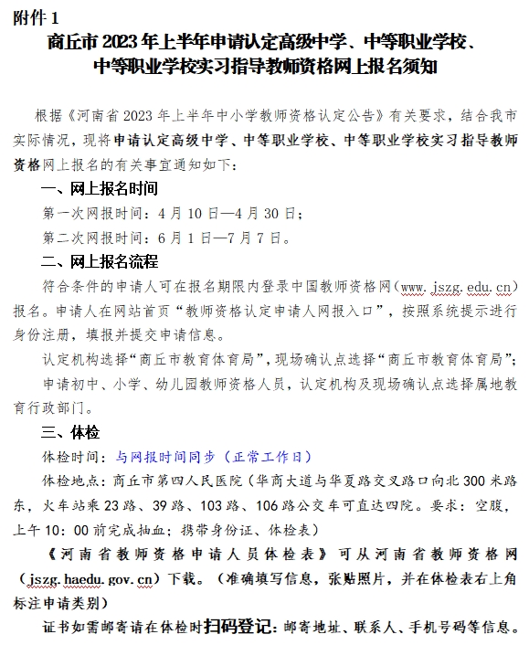 為保證2023年我市教師資格認(rèn)定工作依法有序?qū)嵤,根?jù)《河南省2023年上半年中小學(xué)教師資格認(rèn)定公告》要求,結(jié)合我市實(shí)際情況,現(xiàn)就商丘市2023年上半年中小學(xué)教師資格認(rèn)定工作有關(guān)事項(xiàng)公告如下: