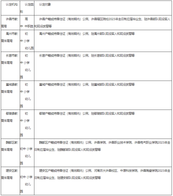 按照河南省教育廳工作安排,結(jié)合我市實際情況,現(xiàn)就許昌市(含所轄2市2縣2區(qū))2023年上半年中小學(含幼兒園)教師資格認定工作有關事項公告如下: