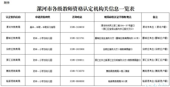 附件:漯河市各級(jí)教師資格認(rèn)定機(jī)構(gòu)相關(guān)信息一覽表