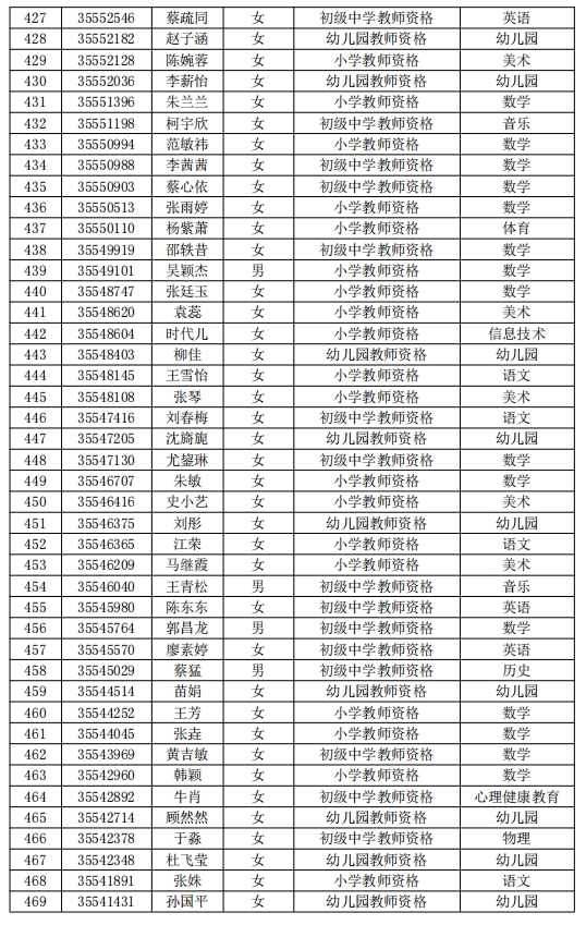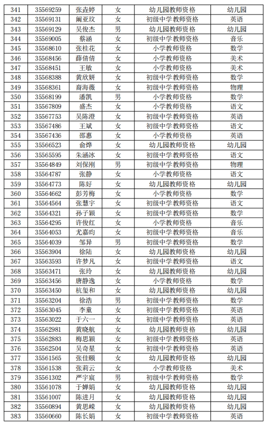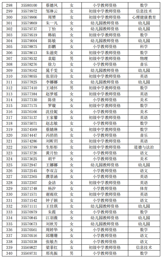 1.蘇州高新區(qū)教育局2023年第一批次教師資格認定通過人員名單