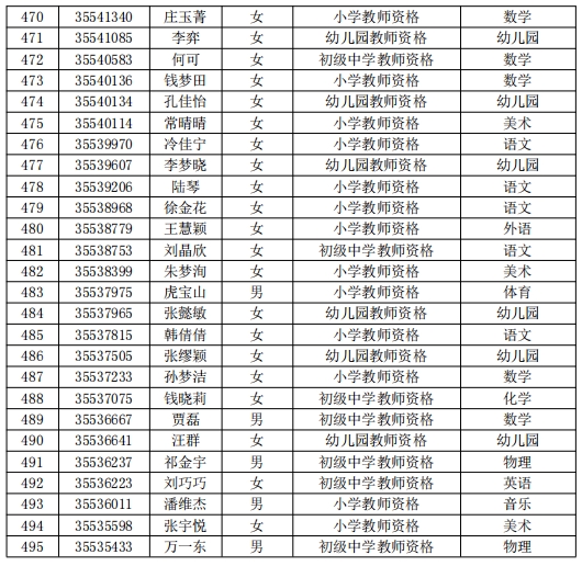 根據(jù)省、市教師資格認定工作的要求,按照網(wǎng)上申請、體格檢查、現(xiàn)場確認、違法犯罪記錄核查等程序,經(jīng)審定,495人通過資格認定。現(xiàn)將認定結果予以公示(見附件1),公示時間為2023年6月21日至2023年6月27日。如有異議,可在公示期內向蘇州高新區(qū)(虎丘區(qū))教育局反映,聯(lián)系電話:0512-68751657。