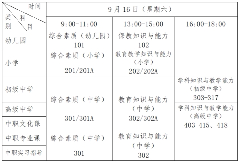 取得科目201A、202A合格的考生,面試僅限于參加小學(xué)教師資格考試的音、體、美專業(yè)科目;取得科目301A、302A合格的考生,面試僅限于參加初級中學(xué)、高級中學(xué)、中等職業(yè)學(xué)校文化課教師資格考試的音、體、美專業(yè)科目。考生已獲得科目201、202、301、302的合格成績,可相應(yīng)替代科目201A、202A、301A、302A的合格成績;但科目201A、202A、301A、302A的合格成績不可替代科目201、202、301、302的合格成績。