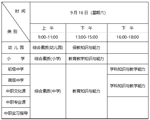 (一)全國(guó)中小學(xué)教師資格考試(筆試)日期為2023年9月16日,具體時(shí)間安排如下: