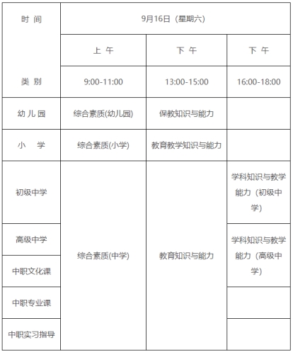 申請(qǐng)幼兒園、小學(xué)、初級(jí)中學(xué)、高級(jí)中學(xué)、中等職業(yè)學(xué)校教師資格和中等職業(yè)學(xué)校實(shí)習(xí)指導(dǎo)教師資格的人員分別參加相應(yīng)類別的教師資格考試。