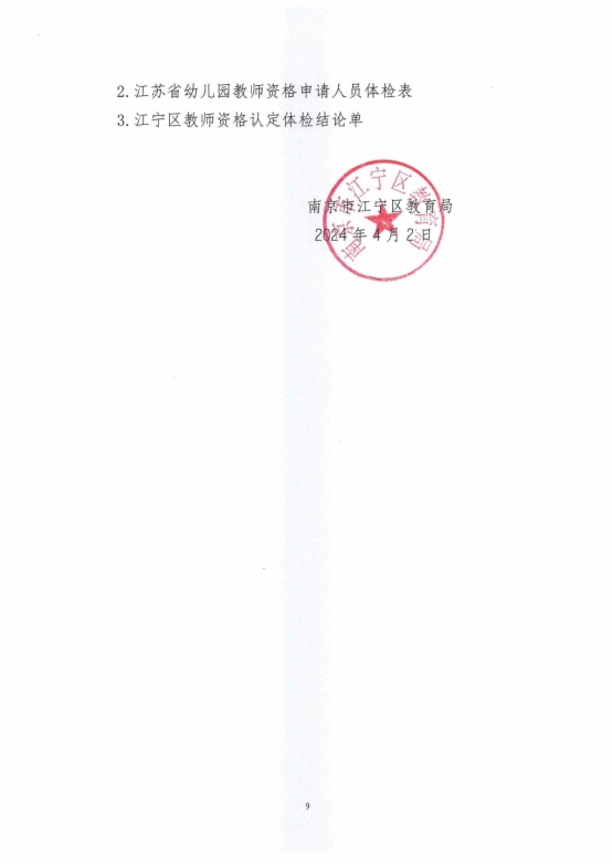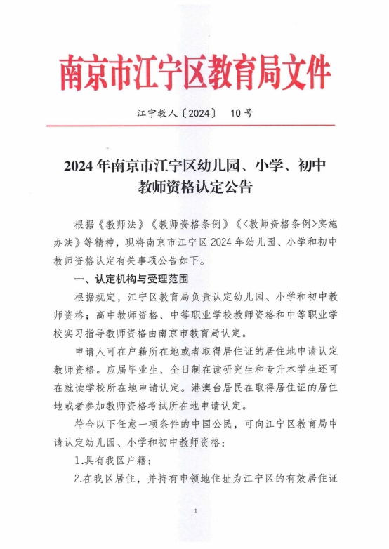 2024年南京市江寧區(qū)幼兒園、小學(xué)、初中教師資格認(rèn)定公告