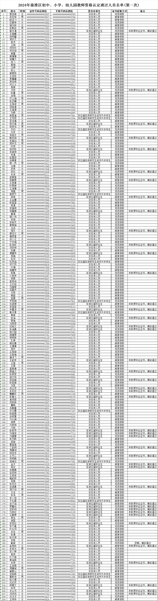 附件:《2024年秦淮區(qū)初中、小學(xué)、幼兒園教師資格認(rèn)定通過人員名單(第一次)》