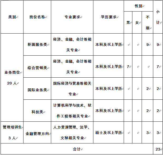 2、本行有權(quán)根據(jù)崗位需求變化及報名情況等因素,調(diào)整或取消個別崗位的招聘,并對本次招聘享有最終解釋權(quán)。