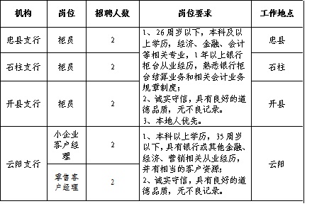 重慶三峽銀行股份有限公司是經(jīng)中國銀監(jiān)會批準(zhǔn),設(shè)立在重慶直轄市的股份制商業(yè)銀行。成立以來,各項(xiàng)業(yè)務(wù)迅速發(fā)展,經(jīng)營穩(wěn)健。截止2015年6月末,在全市擁有營業(yè)網(wǎng)點(diǎn)73個(gè),全行資產(chǎn)總額1160億元,各項(xiàng)存款余額783億元,各項(xiàng)貸款余額306億元,上半年完成利潤11億元。因發(fā)展需要,現(xiàn)公開招聘柜員、客戶經(jīng)理數(shù)名,我們誠邀有志有識之士,共創(chuàng)輝煌的明天!