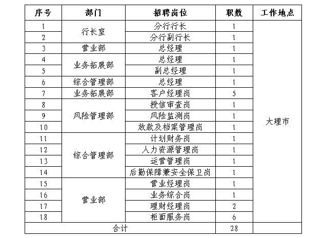 玉溪市商業(yè)銀行大理分行招聘公告