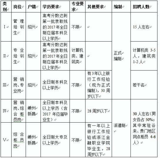 2017年嵊州農(nóng)商銀行校園招聘啟事