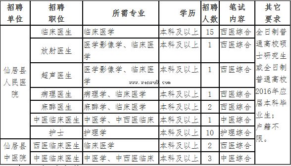 為招聘優(yōu)秀人才,補充醫(yī)院工作人員,經(jīng)相關(guān)部門批準(zhǔn),仙居縣人民醫(yī)院、仙居縣中醫(yī)院擬招聘全日制普通高校研究生、全日制普通高校2016年應(yīng)屆本科畢業(yè)生36名,差額事業(yè)編制,具體招聘事項公告如下: